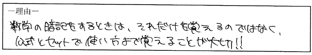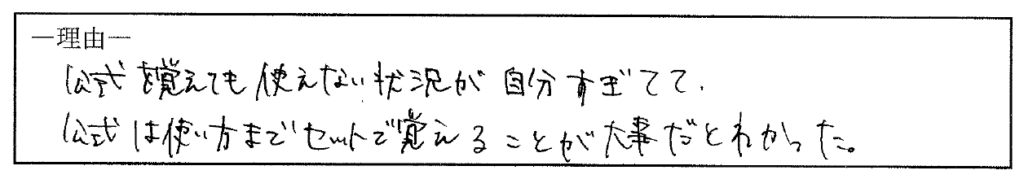 「公式の使い方をセットで覚える重要性」がしっかり伝わっていました!