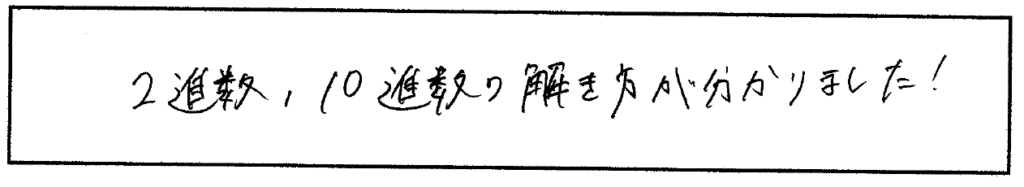 進数の関係性や変換のコツを伝授していただいたことで、