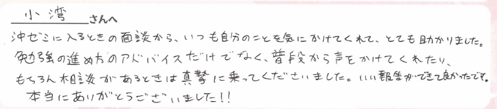 努力が実を結んだこと、沖ゼミ職員一同本当に嬉しく思います。