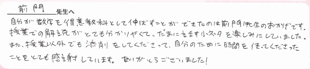 慧さんは昨年12月の学力診断オープンテストをきっかけに入塾✏