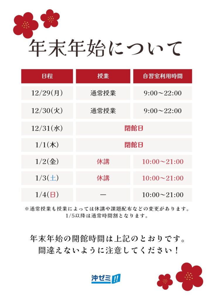 年末年始開閉館のお知らせ