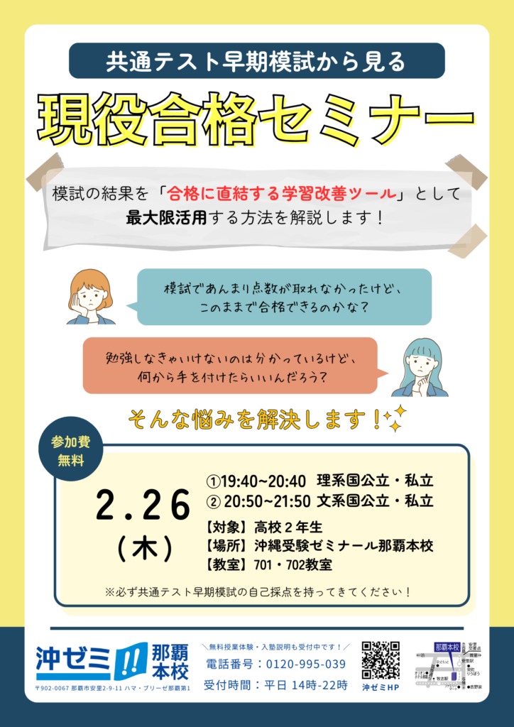【高2生】2/26(木)🔥現役合格セミナー開催🔥