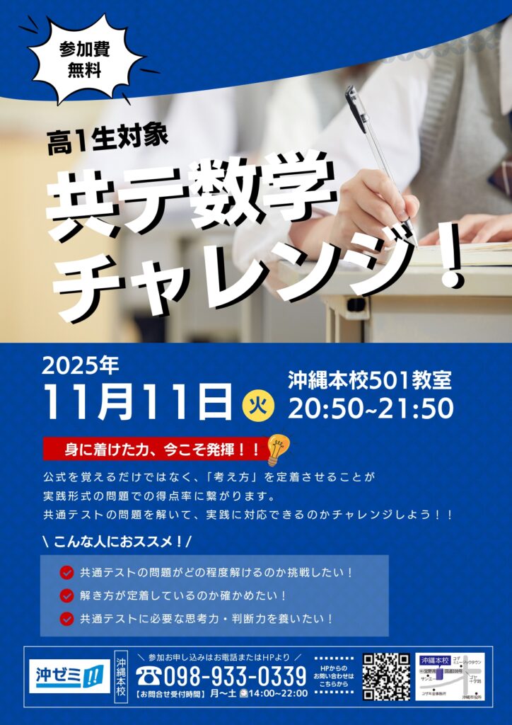 【沖縄本校・普天間校】【高1】共テ数学にチャレンジ✊🔥