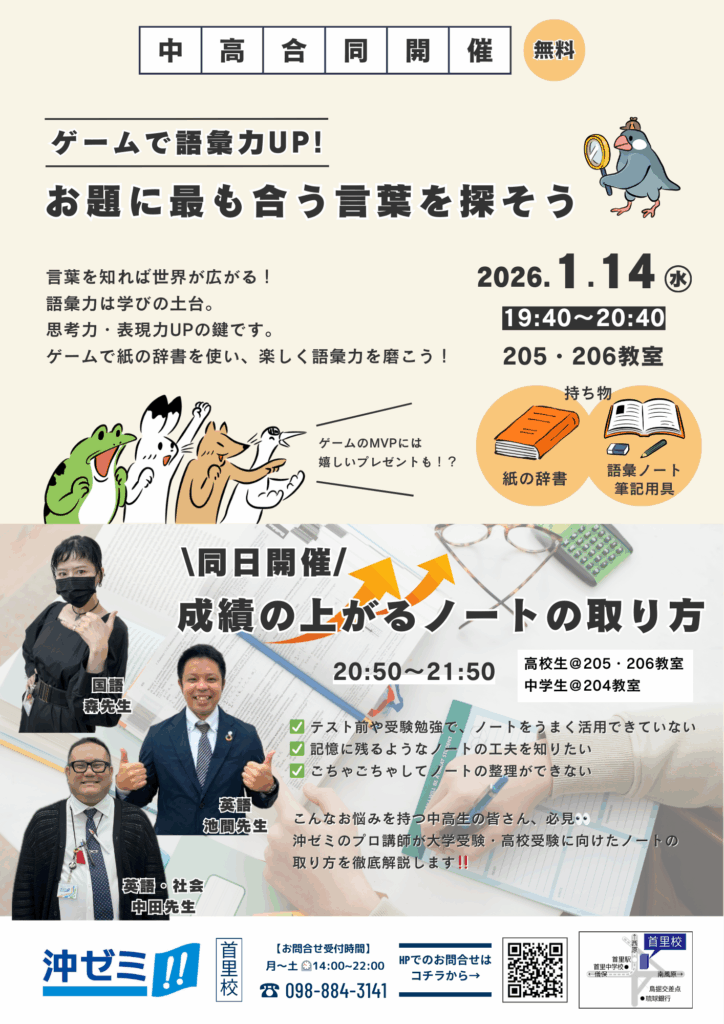 沖ゼミ首里校では、中学生・高校生に向けた、特別イベントを開催します!